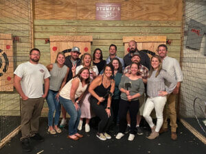 Companies love that this experience gets people off screens and into the moment. Axe throwing sparks energy, laughter, and shared challenges, helping coworkers connect beyond the workplace. The team building and ramp-up can start weeks before your event with designations of teams and tasks to complete to prepare for the “ThrowDown”. Challenge your teams to bond with a variety of assignments including the creation of a team name & uniform. Have them select a team captain and write a rousing cheer they can sing at the Stumpy’s competition. The sky is the limit when it comes to your event. Whether you’re hosting a quarterly celebration, a holiday party, or a thank-you event for vendors and affiliates, Stumpy’s creates a memorable environment where team chemistry naturally thrives.