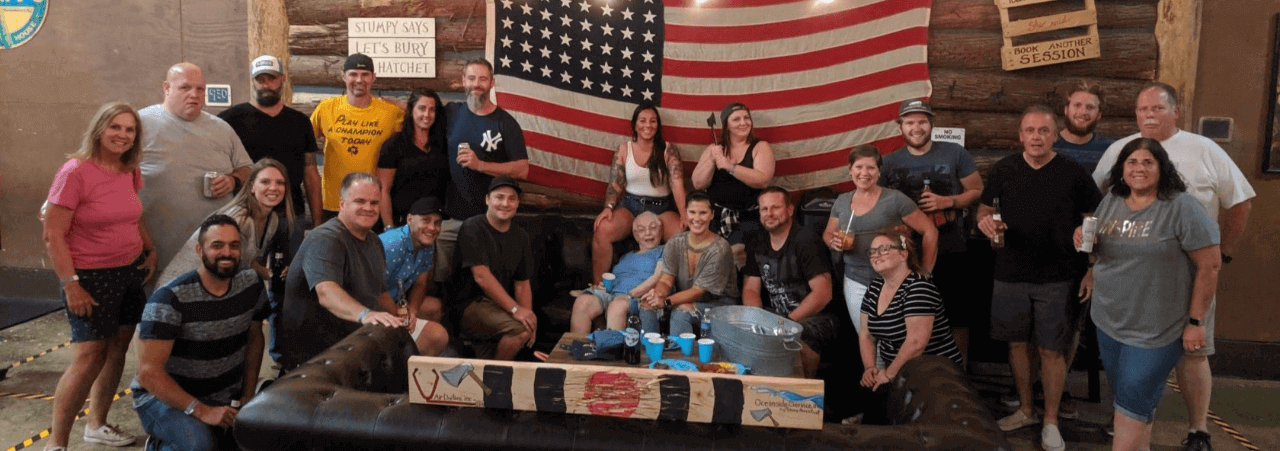 Let loose and have an axe-kicking time with your coworkers to unwind after a hard day’s, month’s, or year’s work by hurling some hatchets at one of our U.S. axe and hatchet throwing bars. Hatchet throwing helps improve morale, increase productivity, and strengthen relationships. Whether you run a small business or a vast corporation, your employees will be burning stress and throwing hatchets and high fives in no time when you consider hosting your next corporate party at Stumpy’s!